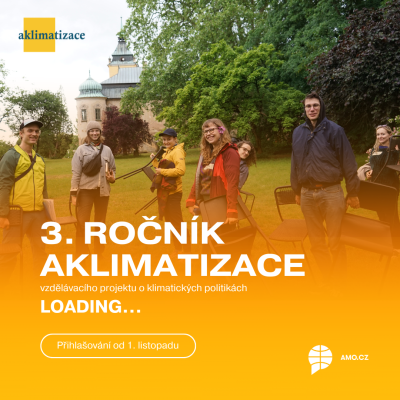 Právě nyní je otevřeno přihlašování do již 3. ročníkuprogramu týmu AMO klima. Program se bude skládat ze seminářů vedených předními experty*kami na českou a evropskou klimatickou politiku a je určen pro mladé profesionály*ky nebo vysokoškoláky*čky napříč obory se zájmem o klima, kteří chtějí zlepšit své znalosti a dovednosti v oblasti klimatických politik. Přihlašovací formulář zde.