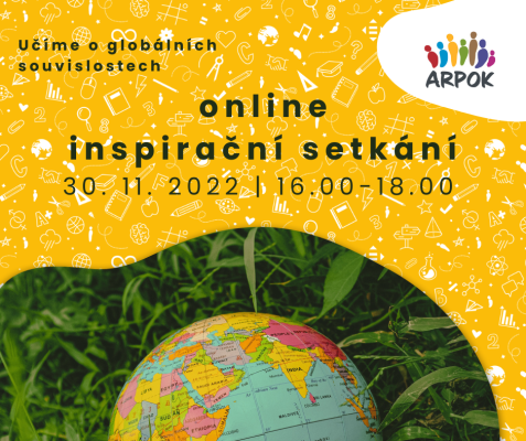Zveme Vás na online inspirační setkání „Učíme o globálních souvislostech“ dne 30. listopadu od 16:00 do 18:00. Setkání přinese nápady, jak (nejen) učit o globálních tématech. Více informací zde.Přihlaste sedo úterý 29. listopadu.Přihlášení dostanou odkaz na ZOOM prostřednictvím e-mailu uvedeného v přihlášce.