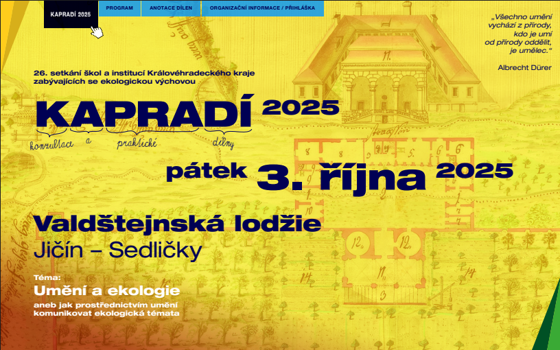 Srdečně vás zveme na 26. setkání škol a institucí Královéhradeckého kraje zabývajících se ekologickou výchovou KAPRADÍ 2025, které se uskuteční v pátek 3. října 2025.