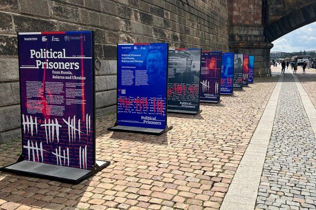 Výstava „Političtí vězni z Ruska, Běloruska a Ukrajiny“ je k vidění na Rašínově nábřeží v Praze, 18. 7. – 15. 8. 2025