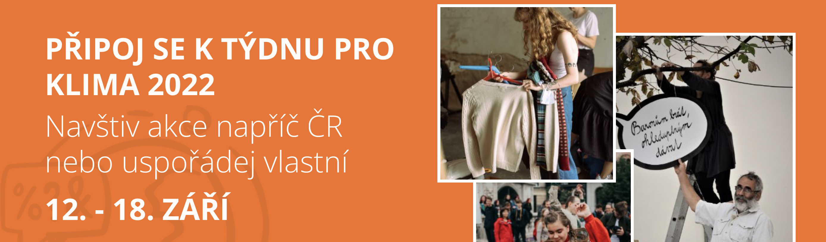Ve dnech 12. – 18. září se bude konat Týden pro klima po celé ČR. Chcete se k letošnímu ročníku připojit s vlastní akcí i vy? Přihlaste svou akci k Týdnu pro klima registrací na nově spuštěném webu www.tydenproklima.cz.