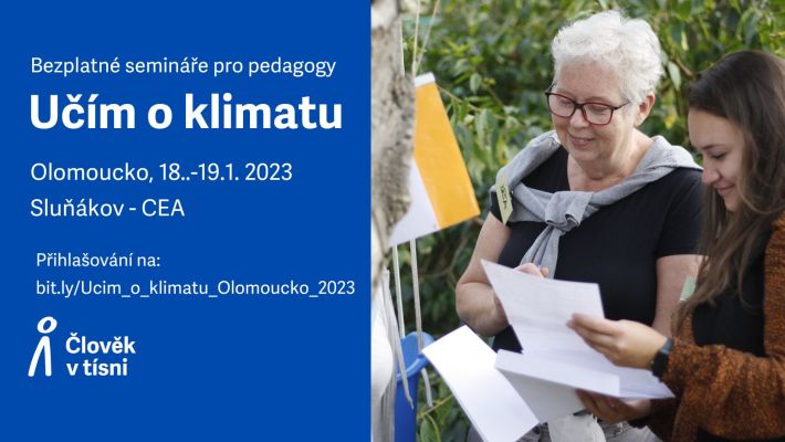 Přemýšlíte, jak učit o změně klimatu? Hledáte oporu v odborném obsahu, ale také ověřené a funkční metody? Přihlaste se na dvoudenní seminář, který se zaměří na využití projektové metody v klimatickém vzdělávání a upozorní na další aspekty, které je třeba ošetřit při otevírání tématu klimatické změny ve výuce. Seminář se koná ve dnech18. – 19. ledna 2023, vždy od 9:15 do 16:00. Více informací naleznete zde.