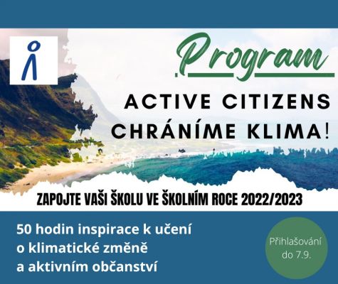 Hledáte jako učitelé nové způsoby a inspiraci, jak zvýšit zájem vašich žáků o ochranu klimatu? Zajímáte se i o oblast aktivního občanství a toho, jakými způsoby ho posilovat u vašich žáků? Pokud ano, přihlaste se do programu pro učitele 2. stupně ZŠ či SŠ. Program obsahuje vzdělávací cyklus v rozsahu 50 hodin zaměřený na metodiku Active Citizens a klimatické vzdělávání. Více informací zde. Přihlásit se můžete do 7. září zde.