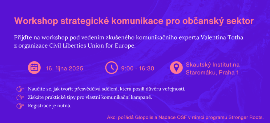 Přesvědčivá komunikace založená na hodnotách dokáže posílit podporu veřejnostivůči organizacím občanské společnosti a je tak nejlepší obranou proti verbálním útokům. Přijďte na interaktivní workshop a dozvíte se víc! Registrujte se do 17. 9.