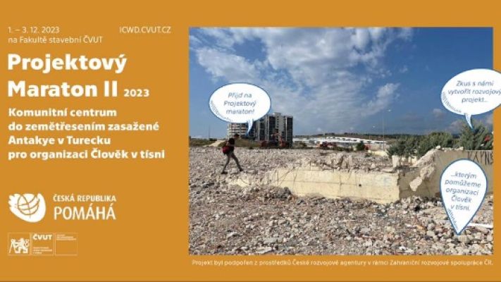Zapojte se do dalšího Projektového maratonu pořádaným ICWD ČVUT a pomozte tak vytvořit projekt komunitního centra v turecké Antakyi pro organizaci Člověk v tísni. Akce bude probíhat ve dnech 1. až 3. prosince od 17:00 v Kantor Coffee na Fakultě stavební ČVUT.  Účastí tedy můžete pomoci vytvořit dobrou věc, vyzkoušet si v praxi přípravu rozvojového projektu a dozvědět se spoustu nových věcí o takovýchto projektech v zahraničí. Přihlásit se můžete zde. Více informací na tomto odkazu.