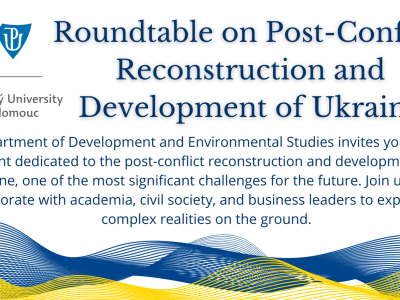 Zveme Vás na kulatý stůl Katedry rozvojových a environmentálních studií PřF UP v Olomouci na téma „Postconflict reconstruction and development“ se zaměřením na Ukrajinu, který se uskuteční ve čtvrtek 17. 10. od 15:00 do 17:00 v Pevnosti poznání PřF UP v Olomouci. Diskuse bude v anglickém jazyce a bude také streamována online. Více informací zde.