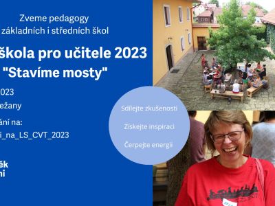Zveme Vás na letní školu pro pedagogy základních a středních škol, která bude probíhat od 21.  do 23. srpna. Letošní letní škola se uskuteční v krásném prostředí Statku Břežany. Budete se věnovat těmto tématům: globální vzdělávání, komunikace ve škole, migrace, klimatická změna. Přihlašovat se můžete do 10. srpna. Více informací zde.