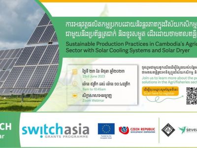 Člověk v tísni, Sevea a EnergyLab Cambodia pořádají 23. června webinář týkající se udržitelných výrobních postupů v kambodžském zemědělství. Dozvíte se například, jak fungují technologie solárních chladicích systémů a solárních sušiček či jaký potenciál mají solární řešení v kambodžském zemědělství a rybářství. Více informací zde.