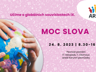 Dne 24. srpna se v Olomouci uskuteční 9. ročník konference o globálních souvislostech. Tématem letošní akce je „Moc slova“. Spolu s hosty se můžete podívat na to, jak mohou slova ovlivňovat chápání a porozumění vztahů mezi lidmi. Uzávěrka přihlášek je 30. června nebo do naplnění kapacity akce (tj. 60 osob). více informací zde.