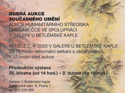 Středisko humanitární a rozvojové spolupráce Diakonie ČCE pořádá charitativní uměleckou aukci. Kromě online aukce na portálu Livebid se dne 2. dubna koná v Galerii U Betlémské kaple také aukce živá, na kterou Vás srdečně zveme. Výstava nabízených děl odstartovala už v neděli 26. března. Navštívit ji můžete kdykoli v otvírací době galerie. Finance budou použity […]