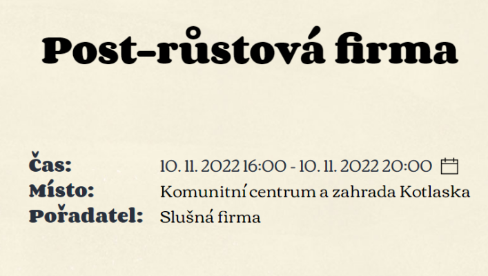 V době neustálých krizí je stále jasnější, že zachování dosavadních trendů a další hospodářský růst není řešením a naopak jen prohlubuje nerovnosti a dokonce i úpadek demokracie ve světě. Přesto je zisk a růst klíčovým organizačním principem současného hospodářského systému. Chceme-li se vyhnout kolapsu a uspokojit potřeby všech, musí se globální ekonomika radikálně změnit. Jak? Tadeáš Žďárský, nejvýraznější postava hnutí za nerůst v České republice, představí 10. listopadu v Komunitním centru a zahradě Kotlaska svou vizi nové ekonomiky. Program a registrace zde.