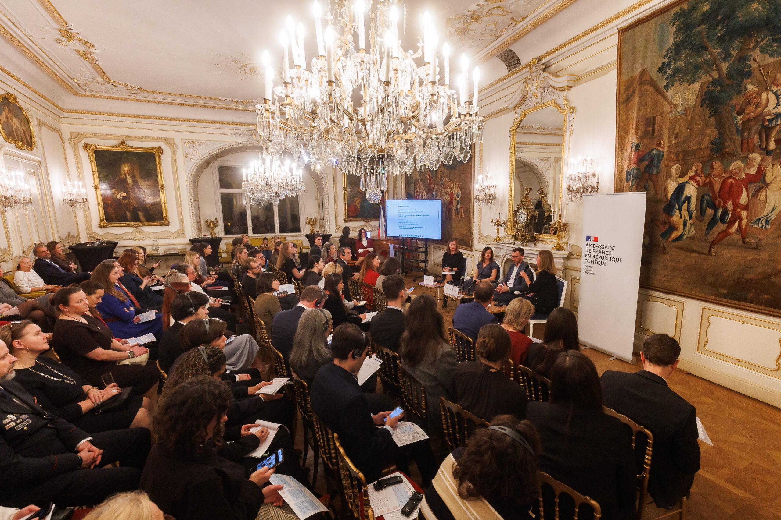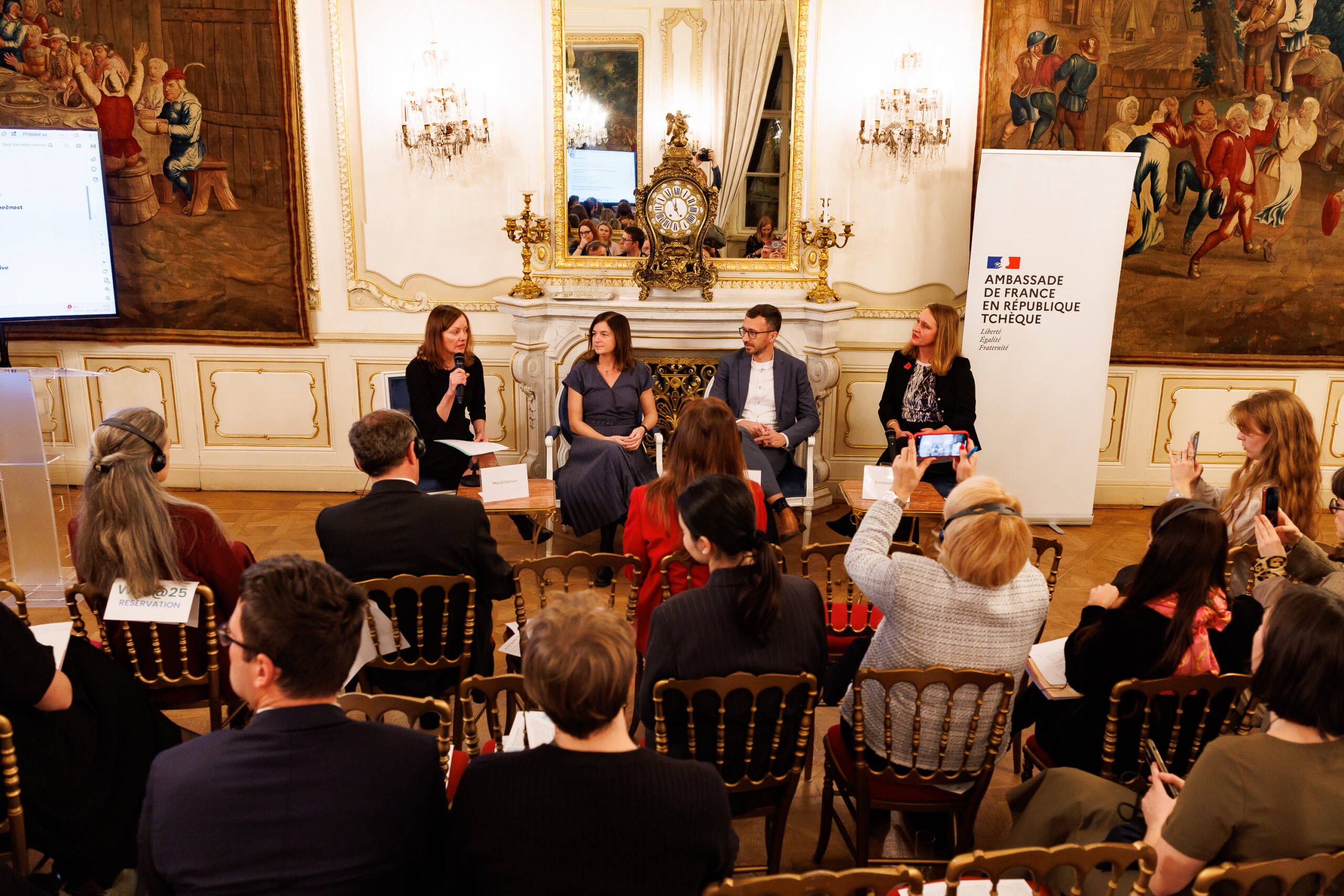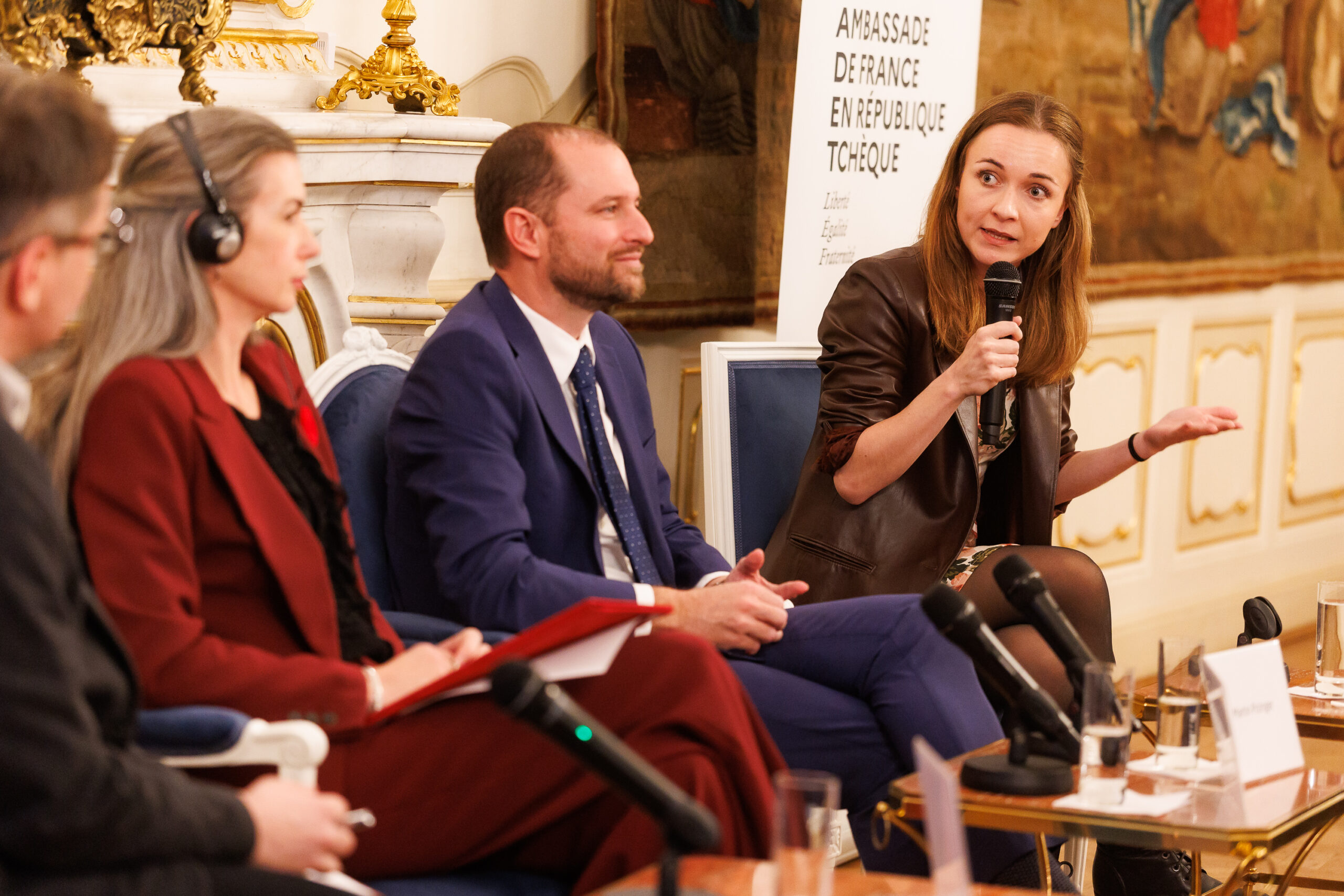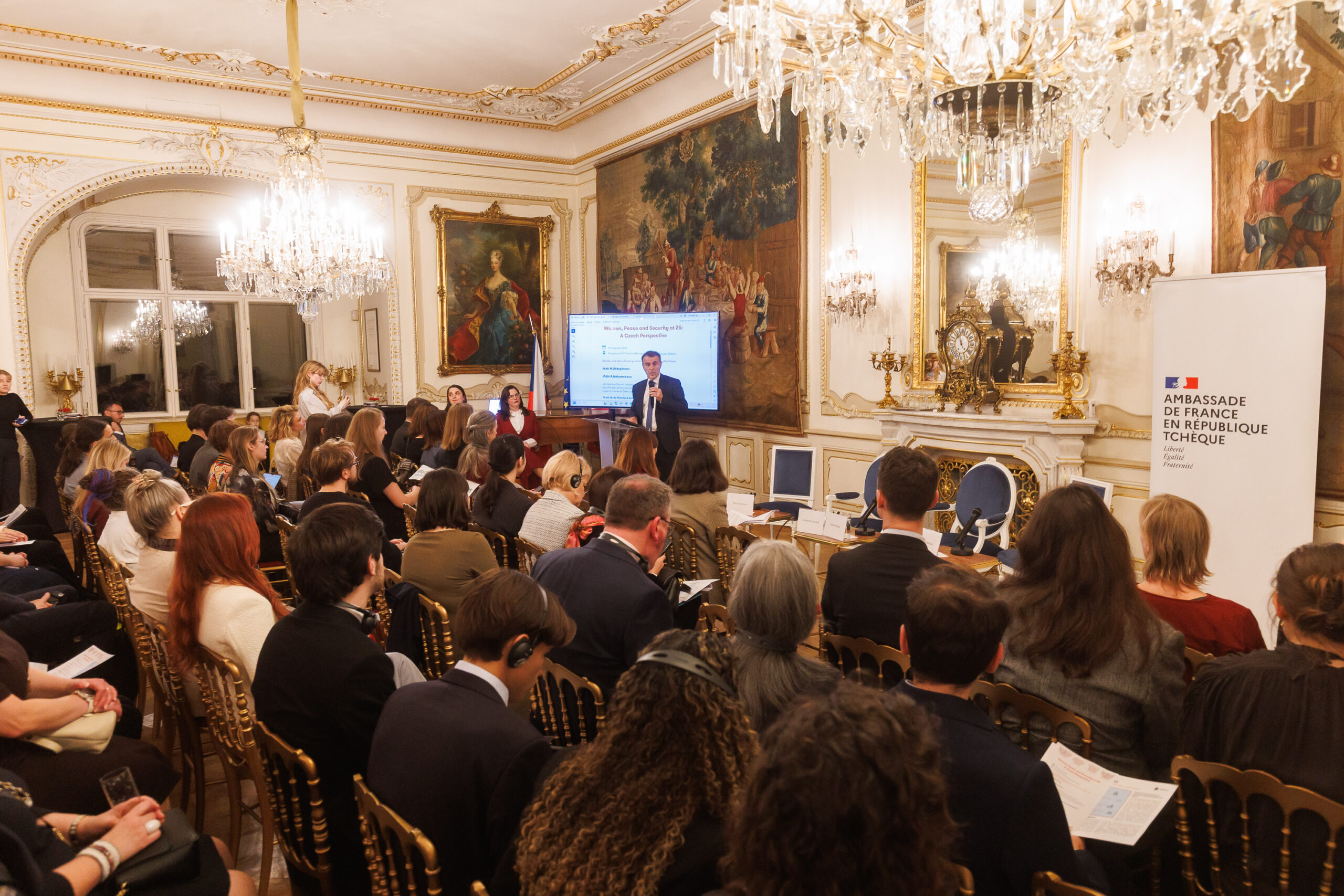 Zahájení akce se zhostil také francouzský velvyslanec J.E. Stéphane Crouzat. Na Jeho Excelenci navázala Irena Hůlová, která večerem provázela, s čtením dopisu od prezidenta ČR, Petra Pavla. Další částí programu byly dvě panelové debaty, které moderovali Dr. Mila O’Sullivan a Ondřej Horký-Hlucháň Institute of International Relations, Prague. První diskuze se zaměřila na domácí dimenzi agendy, druhá potom na zahraniční perspektivu. Měli jsme tu čest debatovat s Eva Valentová, Lenka Vochocová, Radan Šafařík & J.E. Emily McLaughlin, Ludmila Kucer a Martinem Pizingerem.