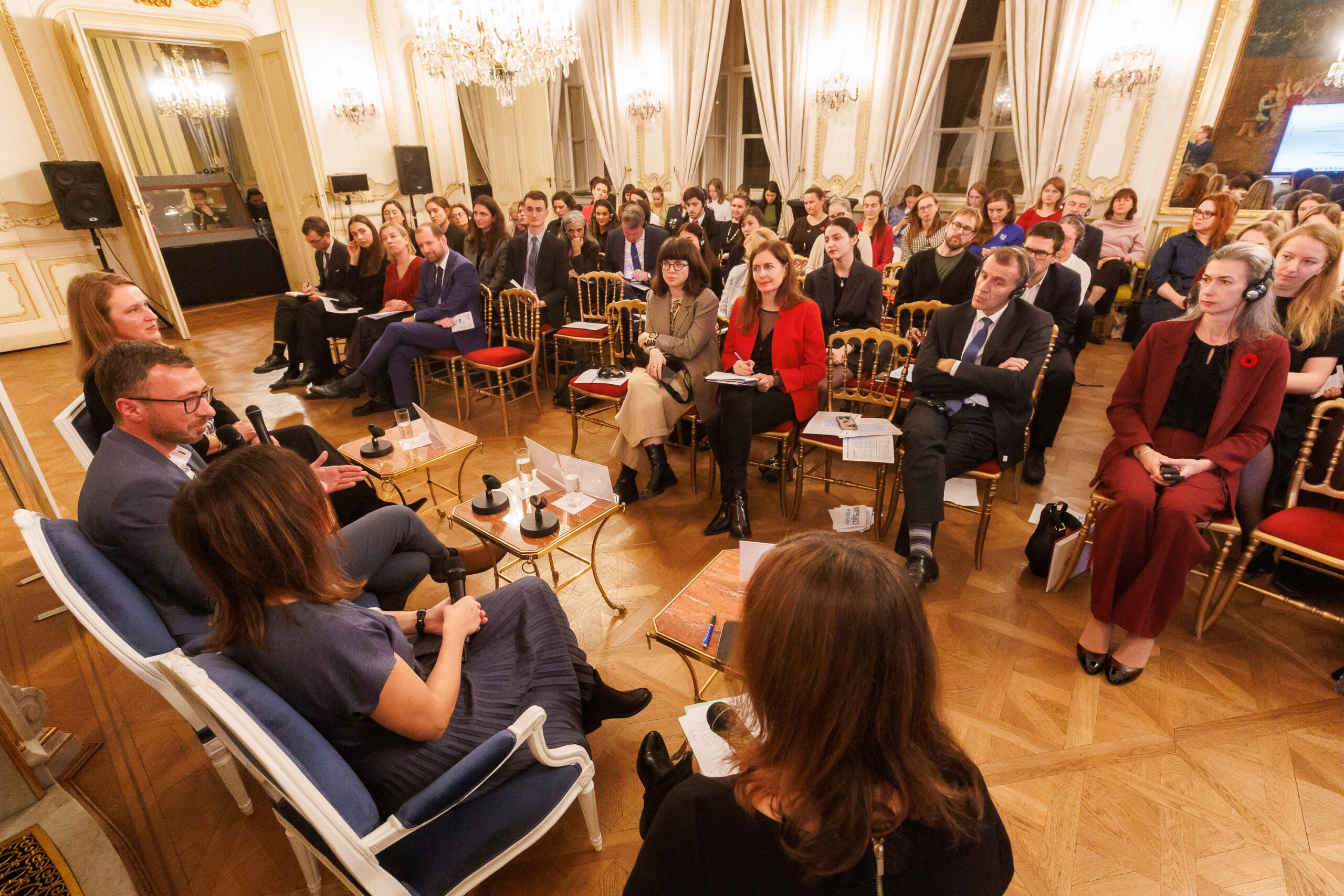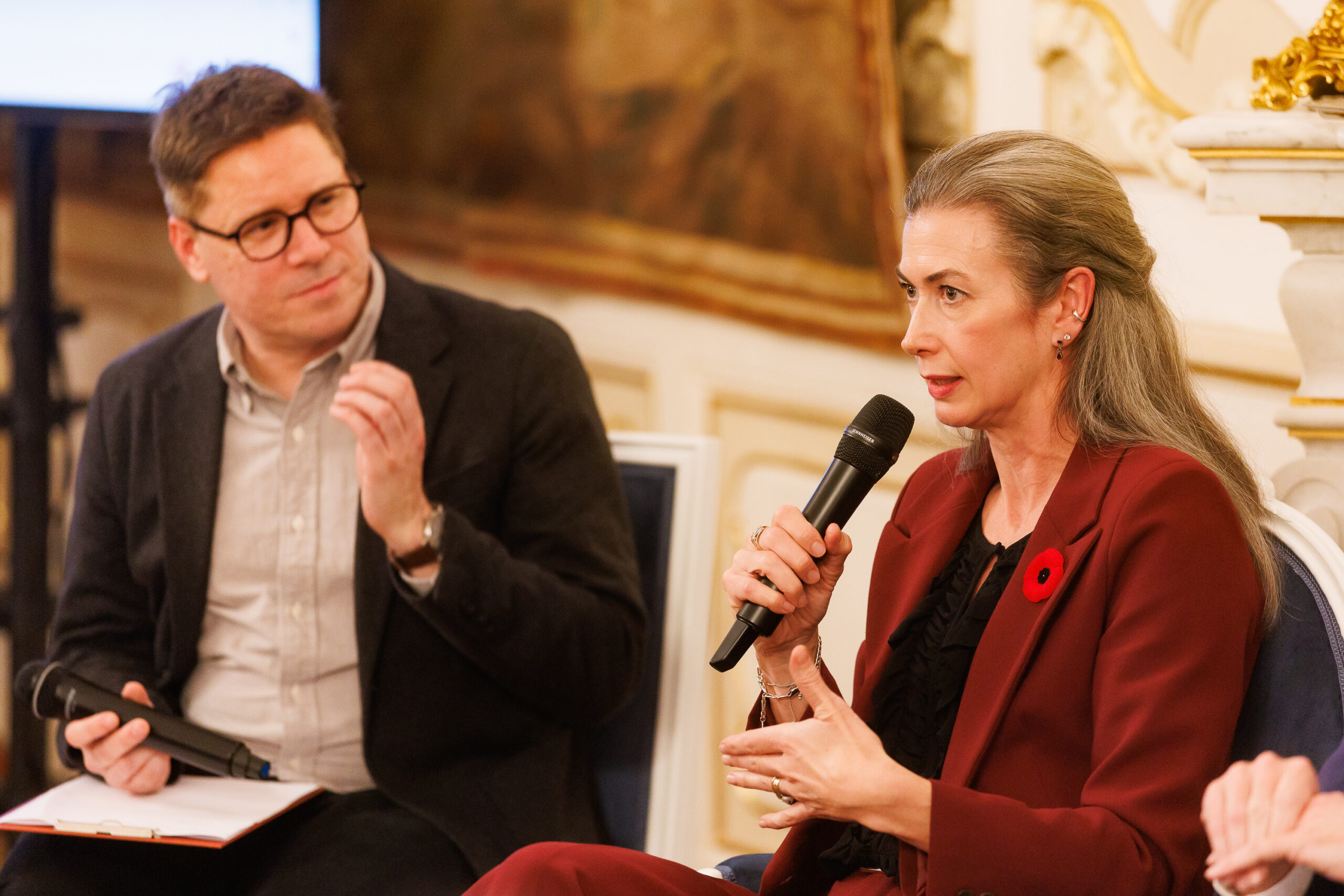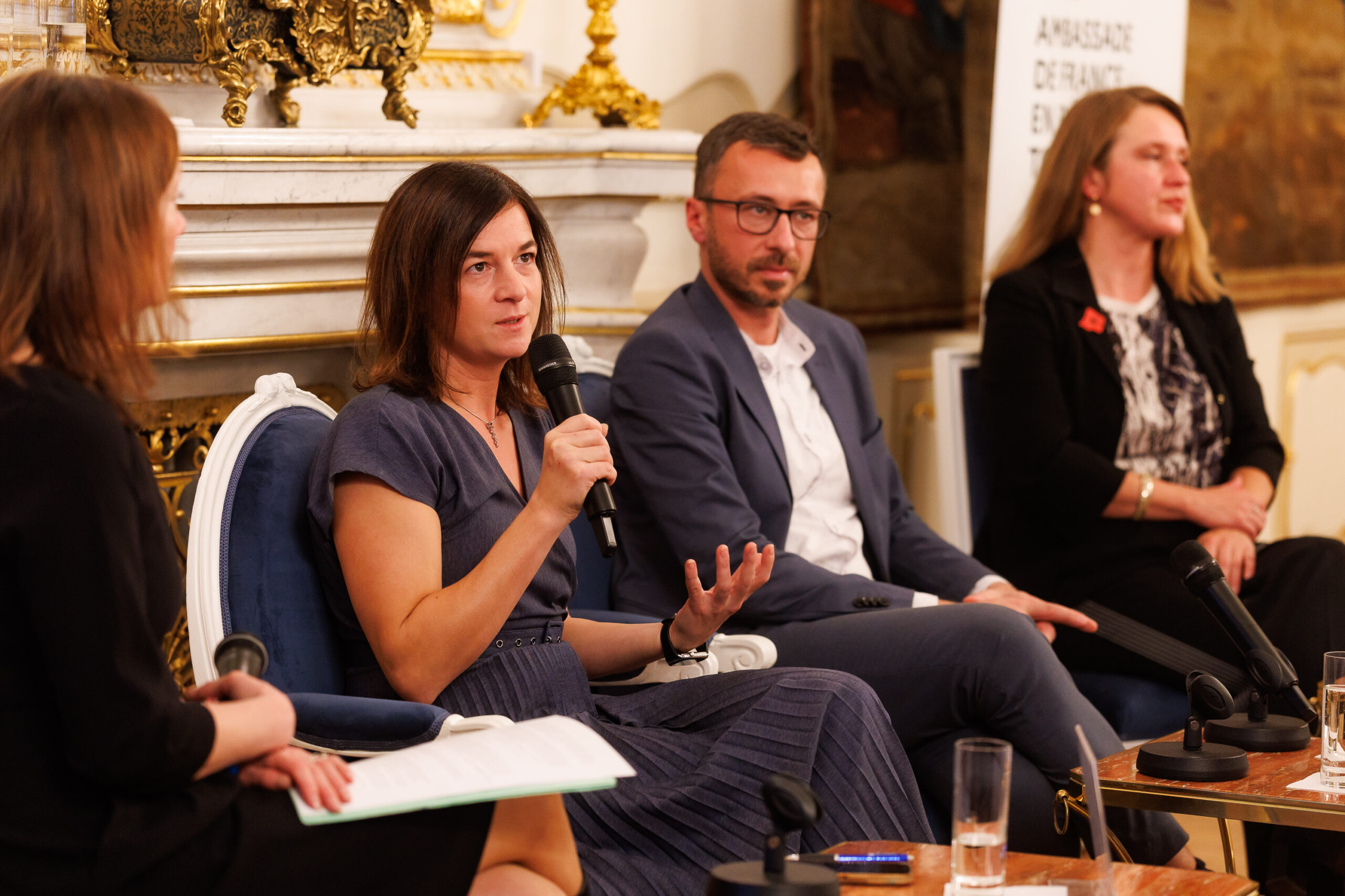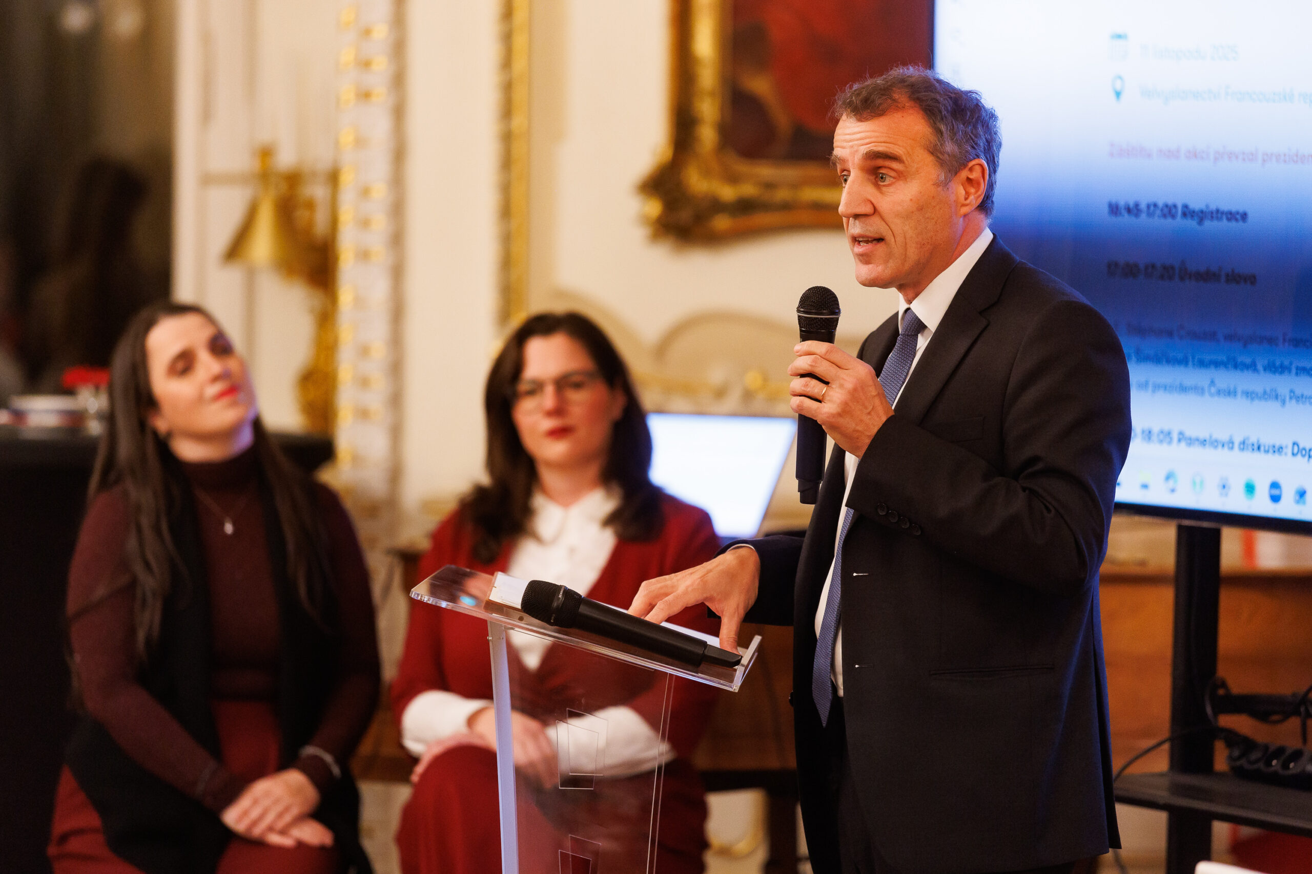 Zahájení akce se zhostil také francouzský velvyslanec J.E. Stéphane Crouzat. Na Jeho Excelenci navázala Irena Hůlová, která večerem provázela, s čtením dopisu od prezidenta ČR, Petra Pavla. Další částí programu byly dvě panelové debaty, které moderovali Dr. Mila O’Sullivan a Ondřej Horký-Hlucháň Institute of International Relations, Prague. První diskuze se zaměřila na domácí dimenzi agendy, druhá potom na zahraniční perspektivu. Měli jsme tu čest debatovat s Eva Valentová, Lenka Vochocová, Radan Šafařík & J.E. Emily McLaughlin, Ludmila Kucer a Martinem Pizingerem.